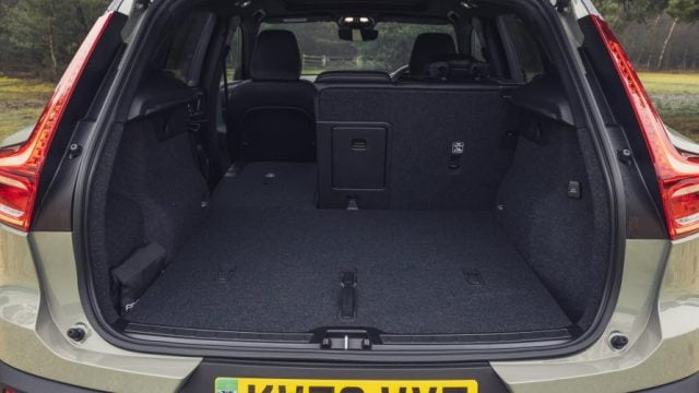 Là SUV cỡ nhỏ, nhưng Volvo XC40 Recharge P8 2025 sở hữu khoang hành lý tương rộng rãi và có thể thoải mái chứa nhiều vali cỡ lớn, balo, túi xách. Để mở rộng thể tích ở đây, người dùng có thể hạ hàng ghế sau với tỷ lệ 50:50 phẳng với mặt sàn.