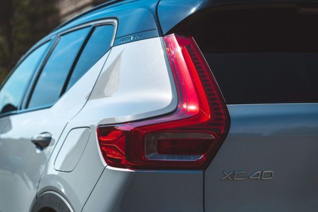 Volvo XC40 Recharge P8 2025 duy trì cụm đèn hậu chữ “L” đối xứng nối liền với cánh gió trên cao kết hợp đèn phanh LED trên cao. Tên thương hiệu “Volvo” được cách điệu ở cửa khoang hành lý giúp mẫu SUV điện này trở nên sang trọng hơn.