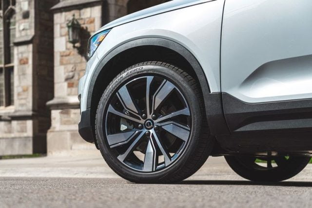 Mẫu SUV cỡ nhỏ của Volvo sở hữu bộ mâm 5 chấu kép kích thước 19 inch với phiên bản cao cấp nhất, vòm bánh xe với điểm nhấn là lớp nhựa sơn đen gia tăng vẻ cứng cáp cho XC40 Recharge P8.