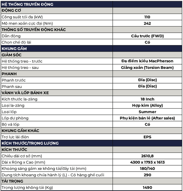 Hãy cùng Giá Xe Điện tham khảo thông số xe ô tô điện Vinfast VF e34 dưới đây: