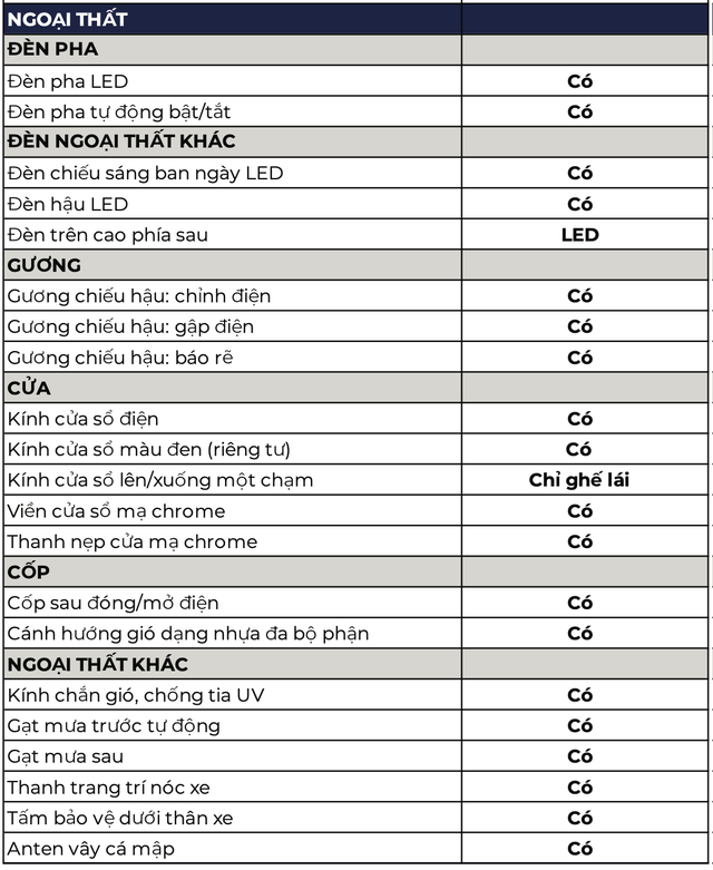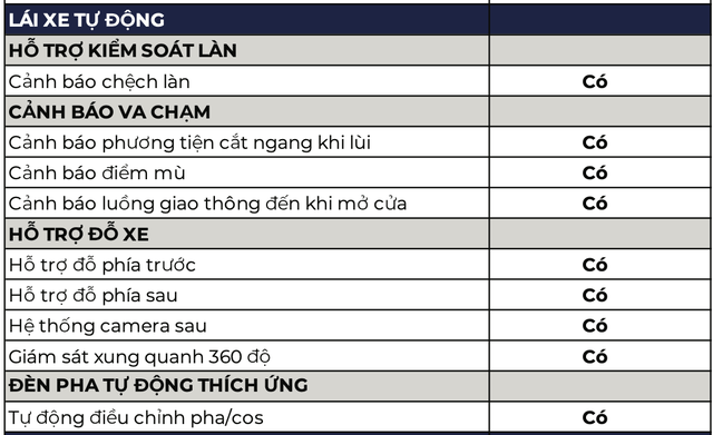 | Bao gồm PIN | 830 | 852 | 852 | 833 | |